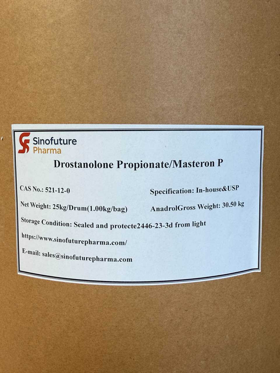 Masteron P, ham API malzemesi olarak sağlanan farmasötik sınıf bir anabolik steroid ester olan Drostanolone Propionate'dir (CAS 521-12-0).