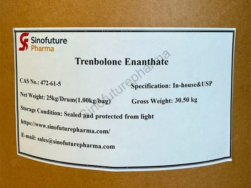 Profesyonel bir Trenbolone Enanthate Üreticisi olan SINOFUTURE PHARMA, farmasötik hammadde kalitesinin tutarlı olmasını sağlamak için saflık seviyelerinin ve safsızlık profillerinin sıkı kontrolünü sağlar.
